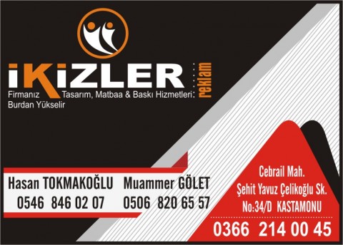 DİZAYN REKLAM Metin SAĞIROĞLU dizeynreklam37@hotmail.com Tel: 212 44 54 Gsm: 0538 927 00 37 Gsm: 0544 772 95 09 – 0543 235 79 29 İnönü Mahallesi Eski Sanayi Sitesi Cami Yolu Sokak 4. Ada No:100 KASTAMONU |