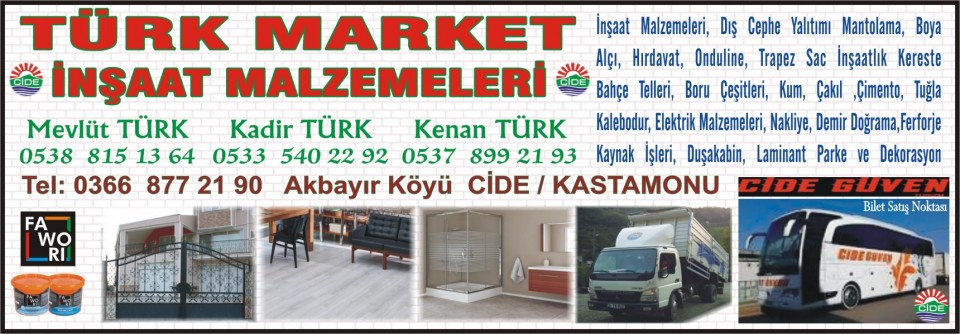 TÜRK MARKET İNŞAAT MALZEMELERİ Tel: 877 21 90 Mevlüt:0538 815 13 64 |