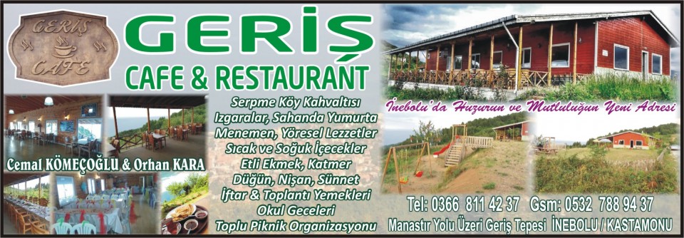 UÇARKUŞUN YERİ İdris UÇARKUŞ Aile Çay Bahçesi-Büfe-Kafe-Restoran-Düğün Salonu Gsm: 0541 867 82 50 – 0541 867 82 03 Boyran Mah. İsmetpaşa Cad. No:40 İNEBOLU |