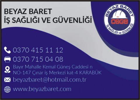BEYAZ BARET İŞ SAĞLIĞI ve GÜVENLİĞİ Bayır Mahalle Kemal Güneş Caddesi Çınar İş Mrk Kat: 4 No:147 KARABÜK |