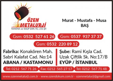 ÖZEN METALURJİ MAKİNA ve KALIP Ayrıntılı Bilgi İçin Tıklayınız